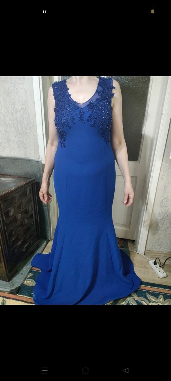 Lacivert renkli, V yaka ve kolsuz, dantelli detaylara sahip uzun ve vücuda oturan abiye elbisedir.44 beden En alta topuk geldiği için küçük yırtıldı ama uzun olduğu için abiye belli olmuyor