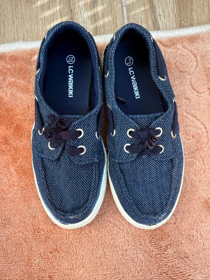 LC Waikiki marka, lacivert denim kumaştan, bağcıklı ve normcore tarzında erkek çocuk loafer ayakkabı. Rahat ve şık görünüme sahip.
