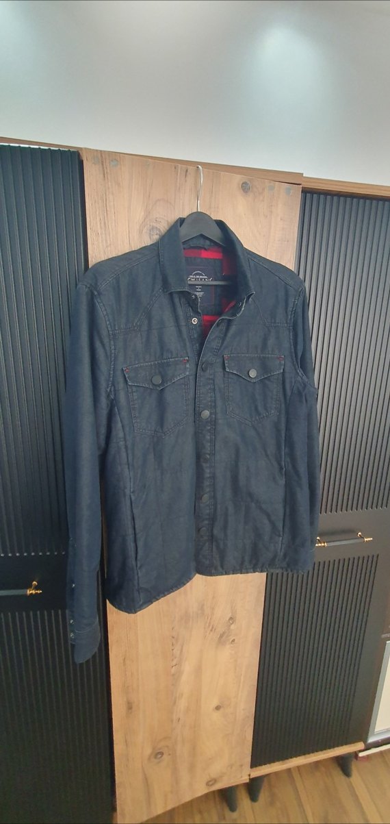 Lacivert denim erkek gömlek, düğmeli ve kesik yaka detaylıdır. Uzun kollu, regular fit ve günlük sokak stiline uygundur.