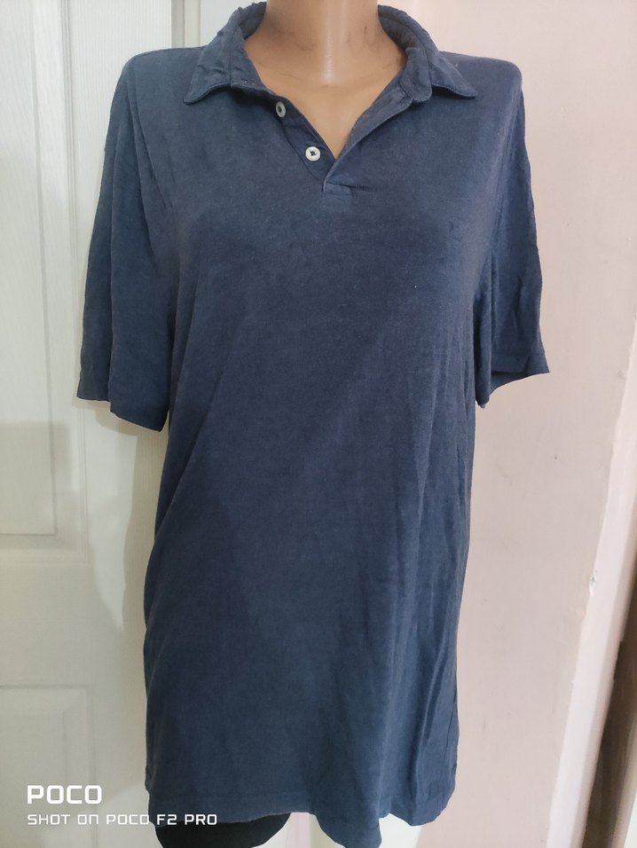 Lacivert renkte, denim kumaştan, yakalı ve kısa kollu erkek polo tişört. Rahat kesimiyle günlük sokak stili için uygundur.