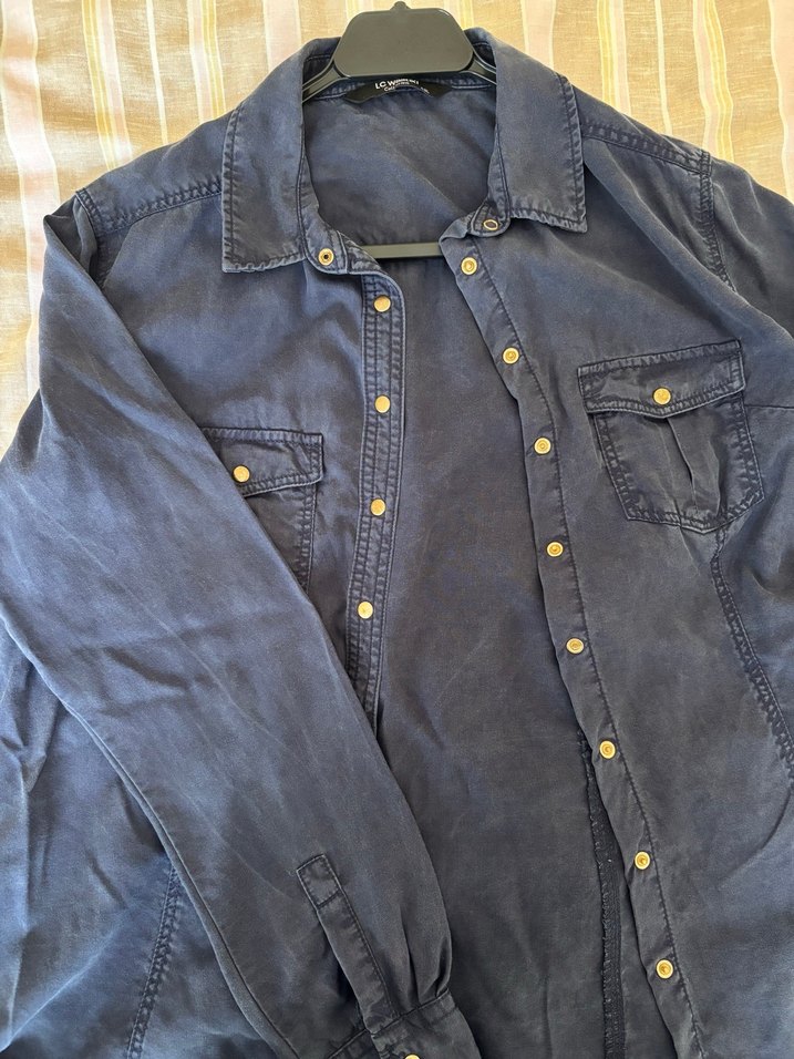 Lacivert Denim Kadın Gömlek