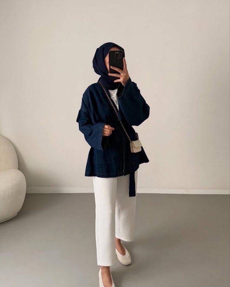 Lacivert denim kumaştan, normal boy kimono. Notlu yakalı ve uzun kolludur. Günlük kullanıma uygun minimal ve şık bir tasarıma sahiptir. Standart - boy 75 cm uzunluğunda