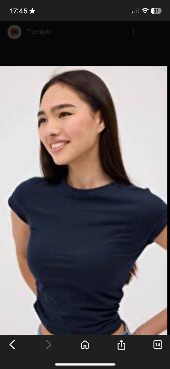 Lacivert denim kumaştan, kısa kollu ve bisiklet yaka kadın tişörtü. Minimalist ve normcore tarzıyla günlük şıklık sağlar.