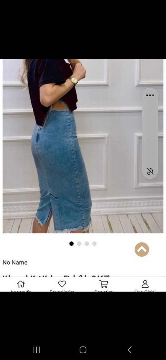 Koyu mavi denim kumaştan, arkada yırtmaçlı, günlük kullanım için uygun, trend sokak stili fitted midi etek.
