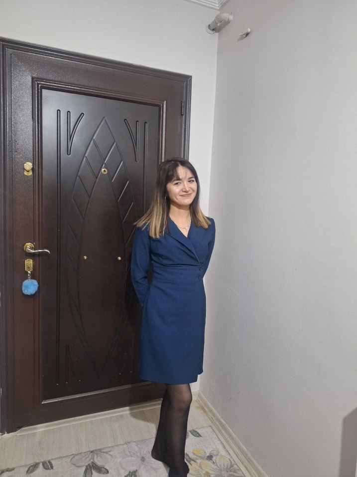 Lacivert denim kumaştan, notalı yakalı, uzun kollu, yırtmaç detaylı midi boy iş elbisesi, normal kesimdir.