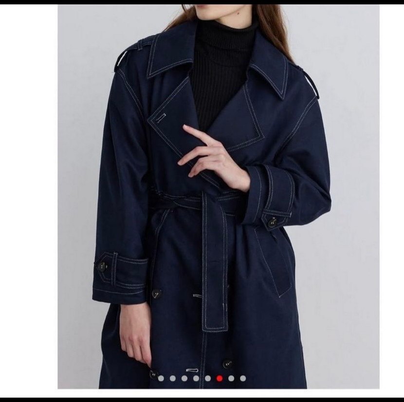 Lacivert denim kumaştan, yakalı, uzun kollu ve belden kemerli midi boy trençkot. Günlük sokak stili için uygun. Suud mağazasından aldım çok az kullandım hiçbir deformesi yoktur.