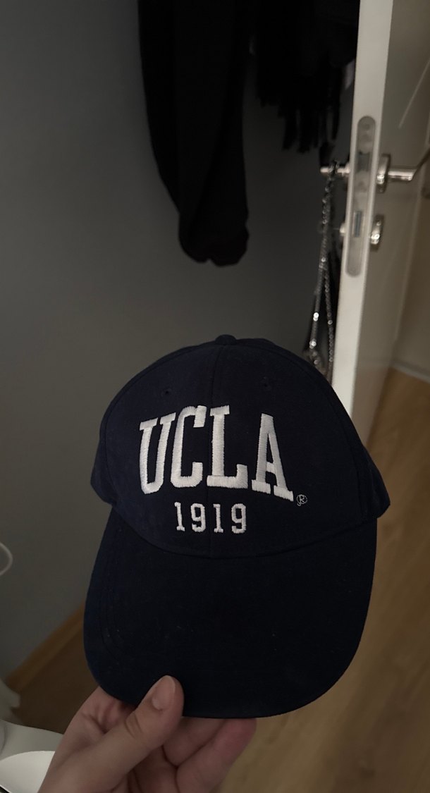 Önünde işlenmiş UCLA 1919 logosu bulunan, ayarlanabilir tokalı lacivert denim şapka.