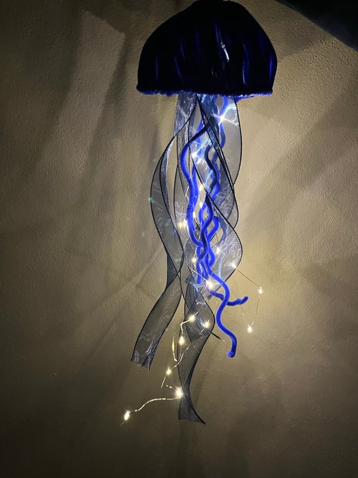 Lacivert renkli denizanası gece lambası şeffaf dokunaçlar ve ışıklarla odanızda etkileyici bir görünüm sunar. İstenilen renkte yapılır.