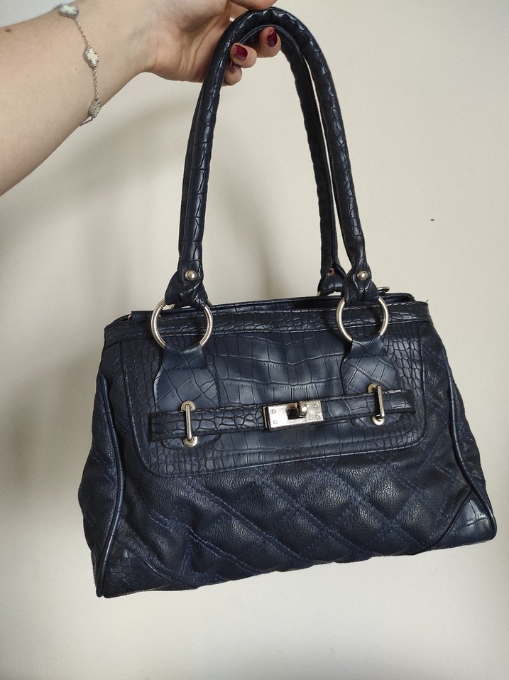 Lacivert Deri Desenli Kadın Çanta vintage y2k kol omuz