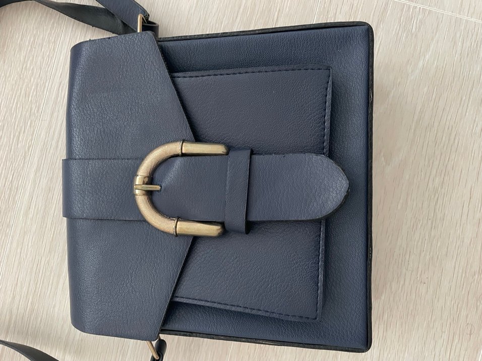 Lacivert Deri Kadın Çanta Metal Tokalı