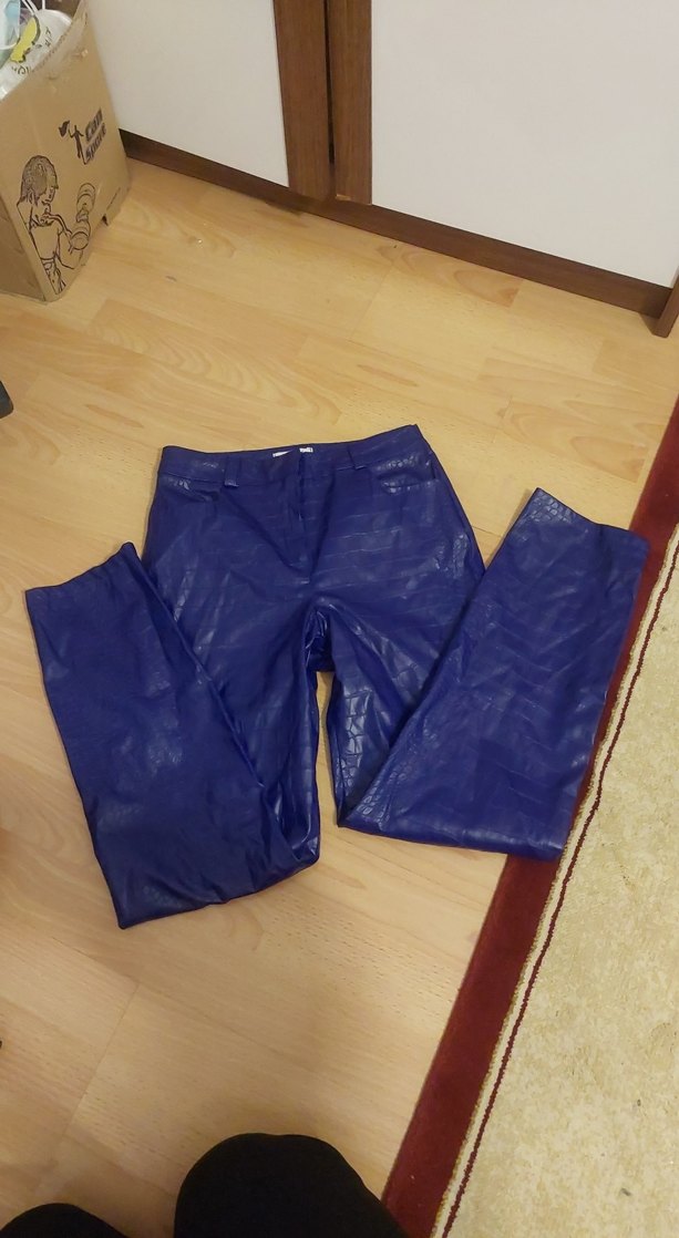 Lacivert Deri Kadın Dar Kesim Pantolon