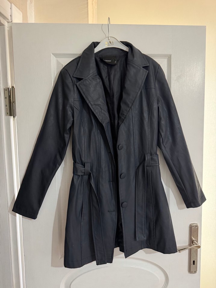 Lacivert Deri Midi trençkot