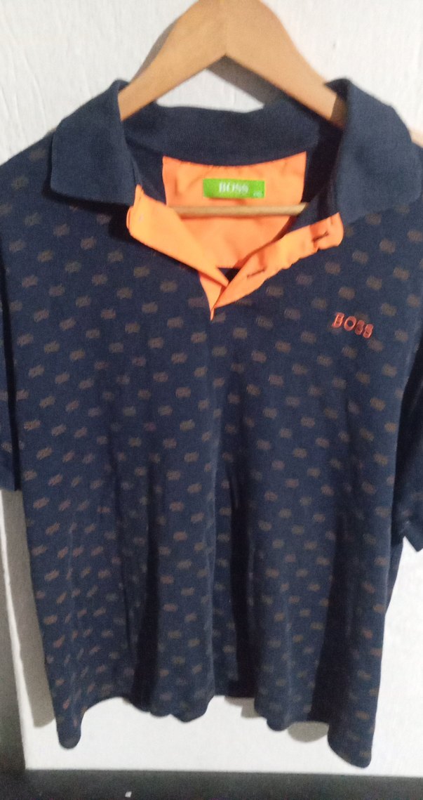 Lacivert renkli, kısa kollu erkek boss tişört. Desenli, düğmeli yakalı ve sentetik kumaştan, rahat kesim. Günlük sokak tarzı için uygun.