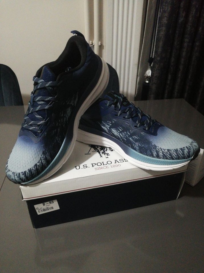 Koyu mavi renkte, desenli ve kauçuk tabanlı erkek spor ayakkabısı. Bağcıklı tasarımıyla U.S. Polo Assn. markasına ait, spor ve trend görünümler için uygun.