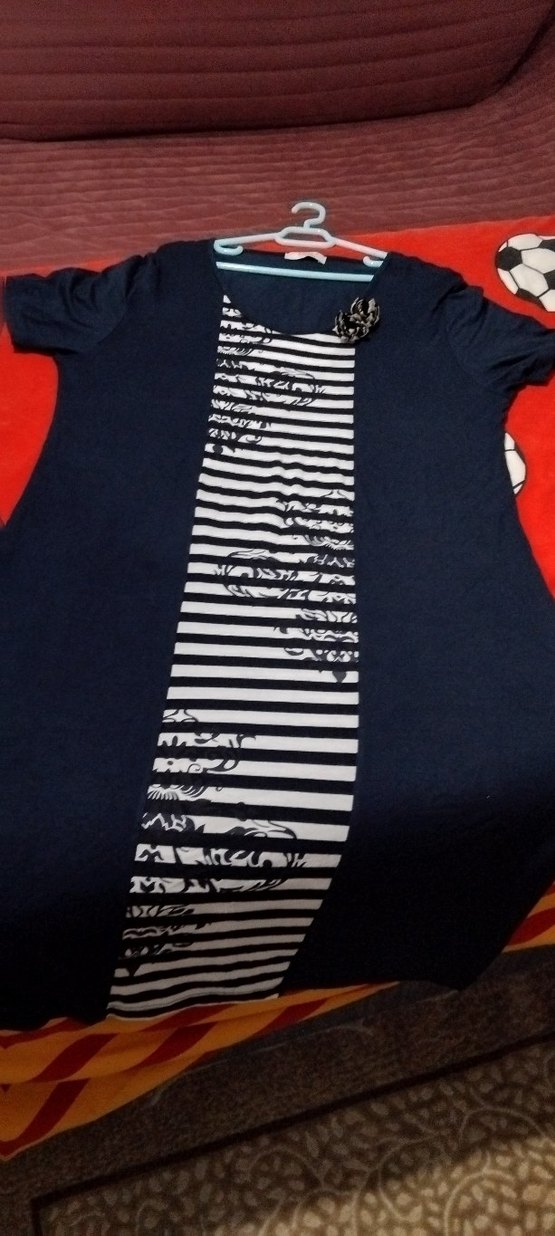 Kısa kollu, V yaka, lacivert hamile tişörtü. Önde pileli çizgili baskı detayı ile günlük kullanıma uygun.