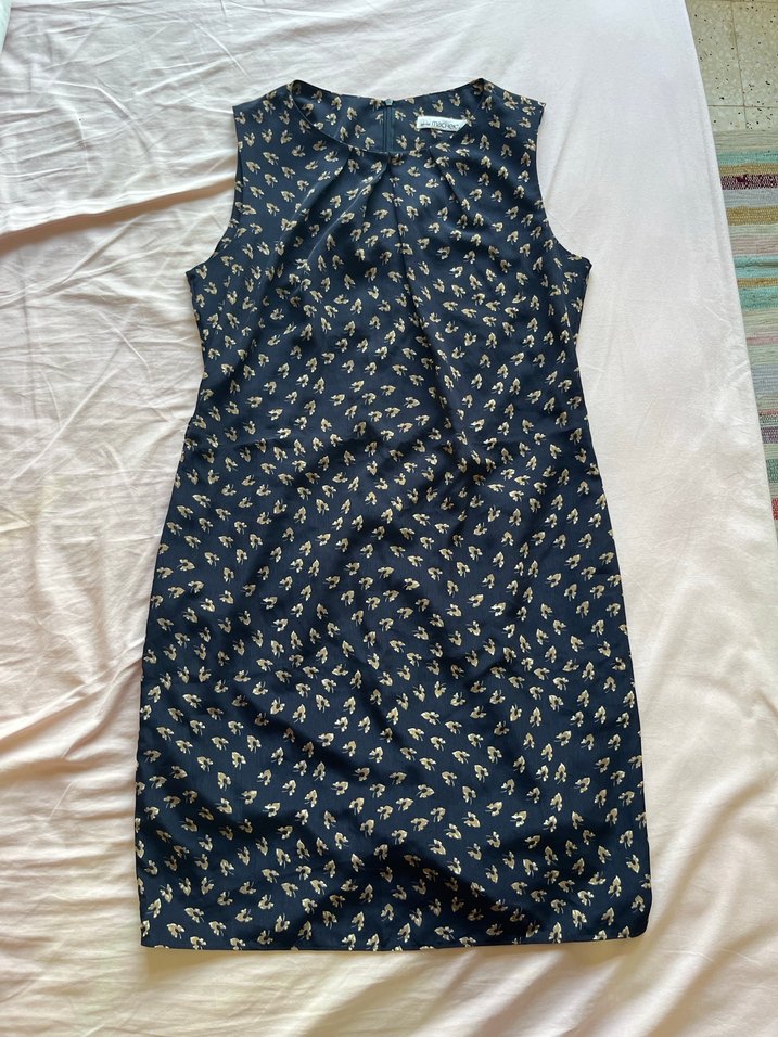 Lacivert, desenli kadın elbisesi etiket bedeni 42dir ancak L bedene de uygundur