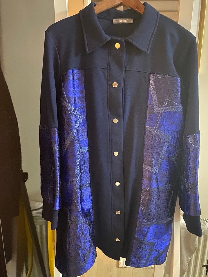 Noşhe Marka Lacivert desenli ve regular fit. Notlu yaka ve uzun kollu, ofis için uygun streetwear tarzında.