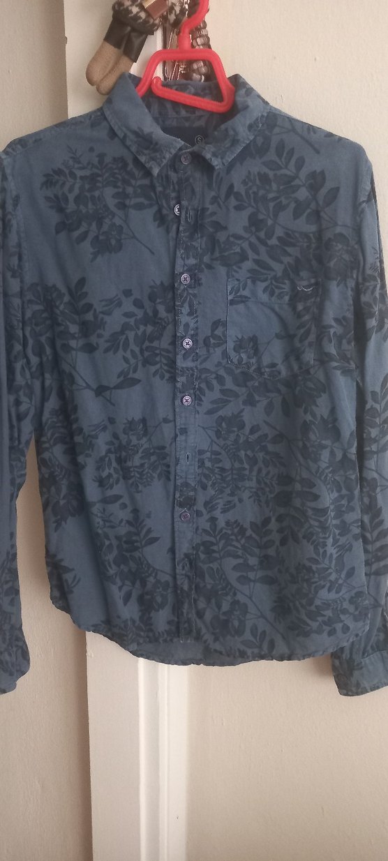 LACIVER renkte, düğmeli ve yakalı, bol kesim erkek gömleği. Yumuşak kumaş üzerine baskılı bohem desenlidir, günlük rahat kullanım için uygundur.