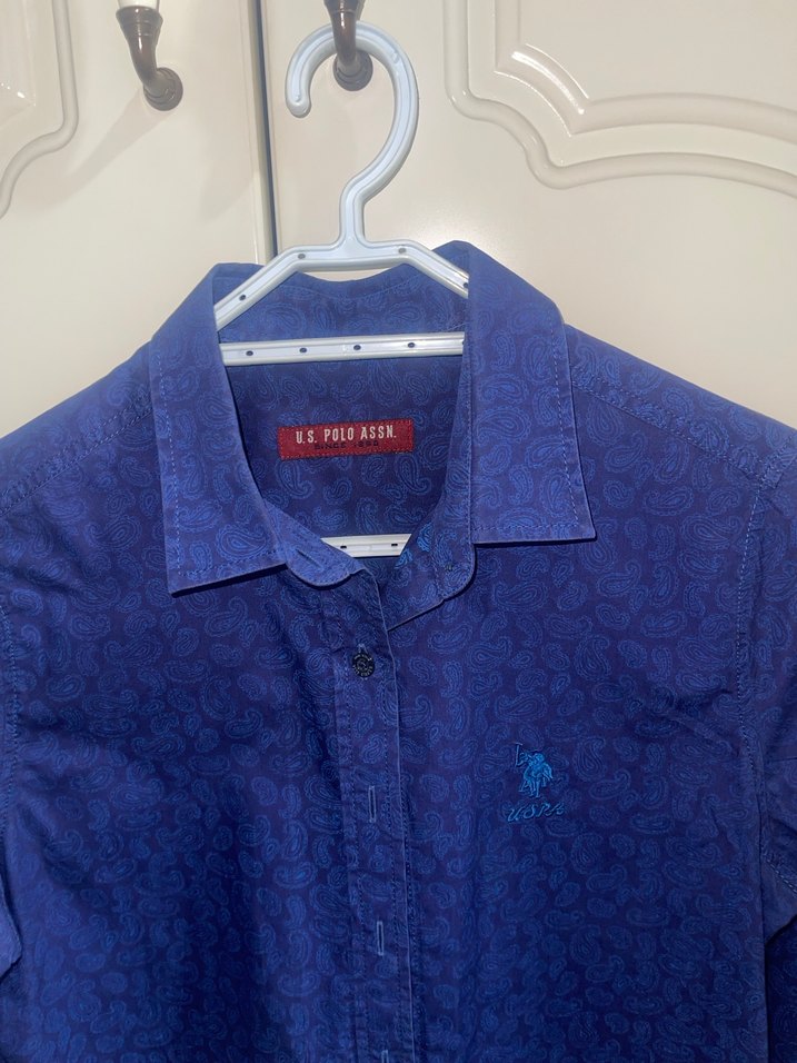 Düğmeli, yakalı lacivert gömlek, desenli ve bol kesim. Günlük rahat kullanım için uygun, yumuşak dokulu kumaştan yapılmıştır. Polo marka