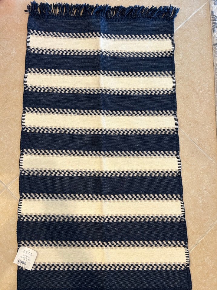 Lacivert diger tarafı gri Çizgili Bohem 60x100 cm