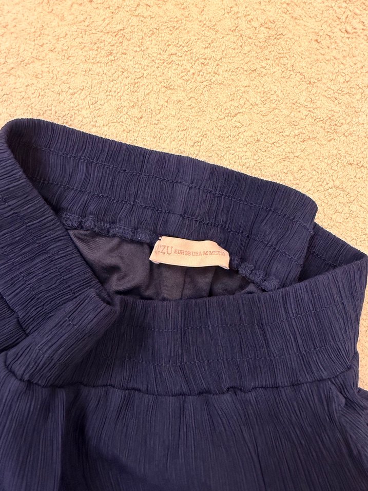 Lacivert renkte, rahat kumaştan, pilili detaylı, rahat kesim quzu marka kadın pantolon.