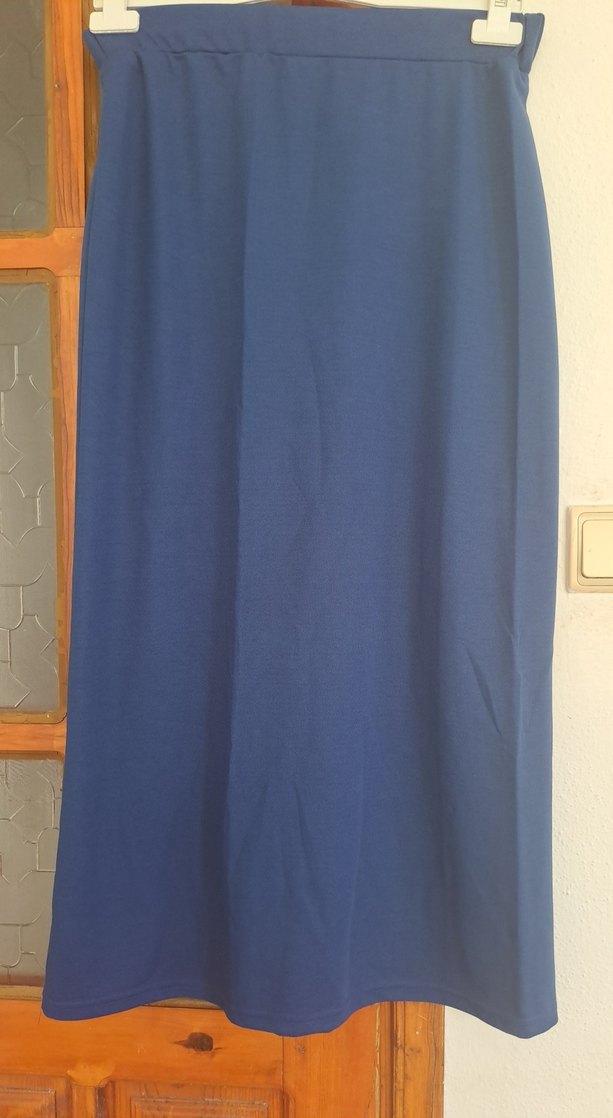 Lacivert uzun etek, dökümlü tasarımı ve rahat kesimiyle sentetik kumaştan üretilmiştir. Ofis kullanımı için uygundur.