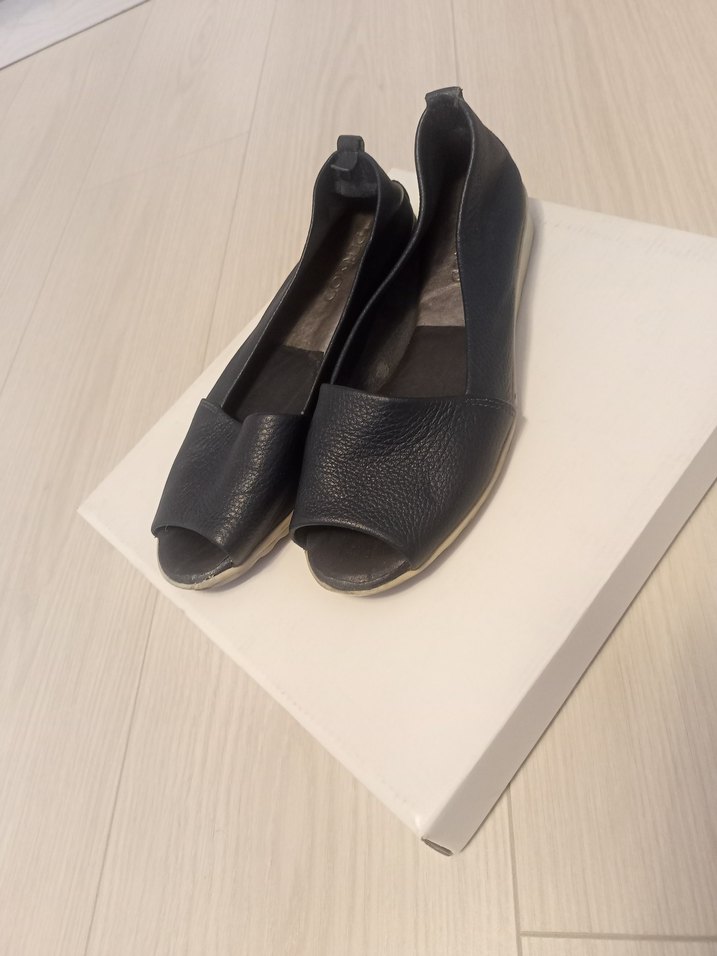 Lacivert, dolgu topuklu kadın babetler, kauçuk malzemeden üretilmiş . Minimalist normcore tarz, günlük kullanım için uygundur. Hakiki deridir hiçbir sorunu yoktur