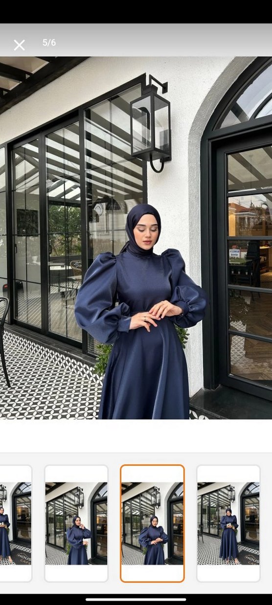 Lacivert uzun kol ve yüksek yakalı, drapeli tasarıma sahip uzun elbise. saten kumaştan, düzenli kesim etnik desenli, günlük kullanıma uygun. bir kaç kere giyildi tertemiz