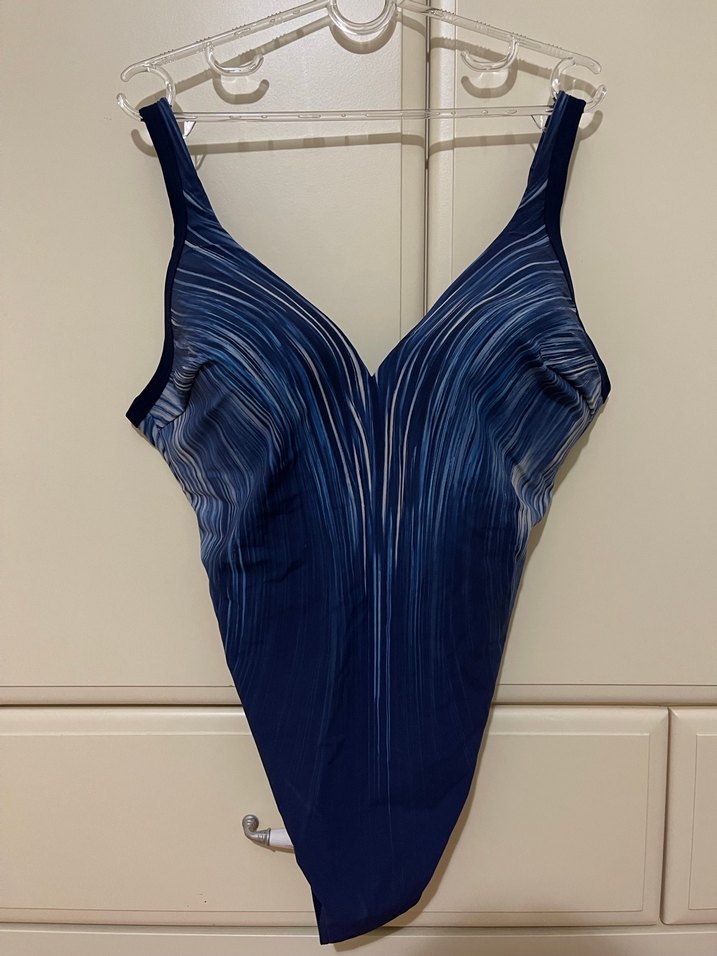 Lacivert renkte, drapeli ve kolsuz kadın mayo. Vücuda oturan kesimi ve midi boyu ile çağdaş ve şık bir görünüm sunar.