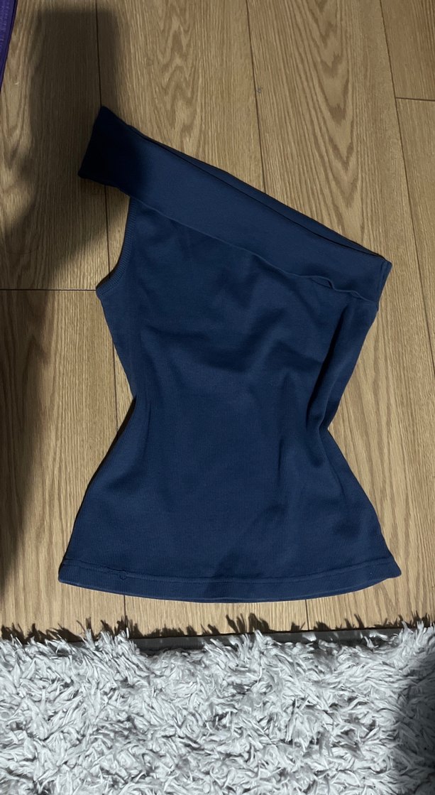 Lacivert renkte, kayık yaka ve kolsuz, drapeli tasarıma sahip, kısa mini boyda, sentetik kumaştan yapılmış kadın bluzu. Minimalist ve sokak stili için uygun.