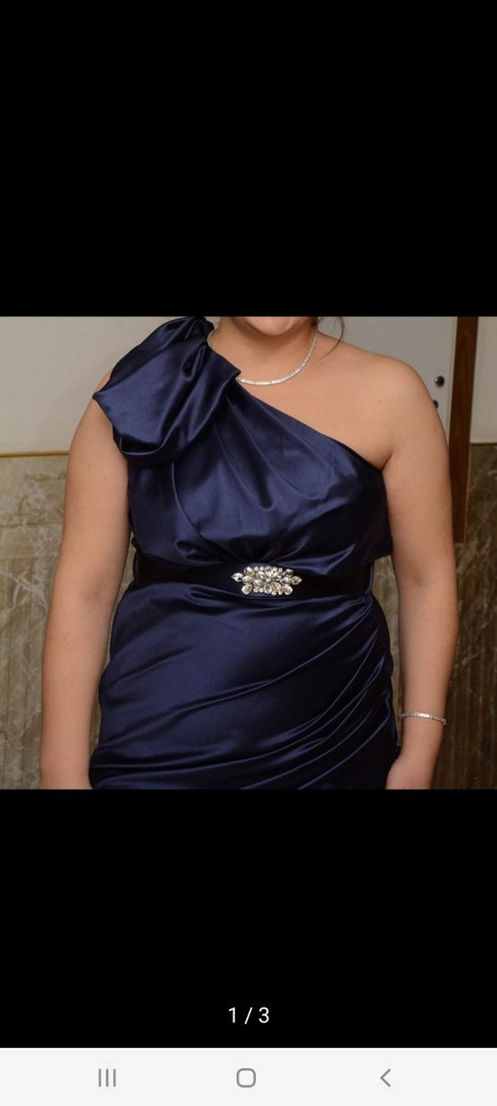 Lacivert, drapeli, straplez midi abiye elbise. Şık, vücuda oturan kesimi ve parlak dokusuyla düğünler için uygundur. ✨