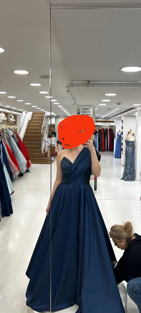 Lacivert Drapeli Uzun Abiye Elbise - Görsel 2