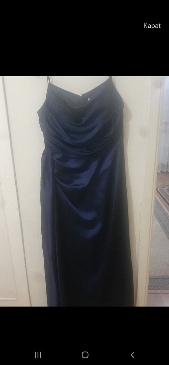 Lacivert Drapeli Uzun Abiye Elbise boy omuzdan 153 cm bel önden
