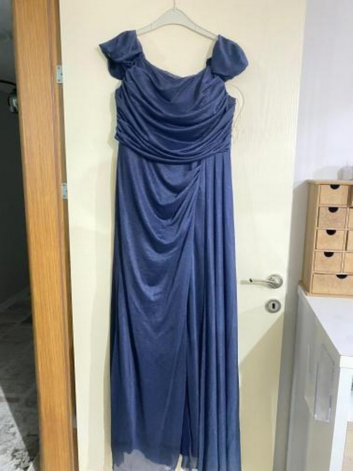 Lacivert renkte, drapeli detaylara sahip, straplez ve kolsuz uzun abiye elbisedir. Düğün ve özel davetler için uygun, vücuda oturan kesime sahiptir. ✨1 kere giyildi ikinci el