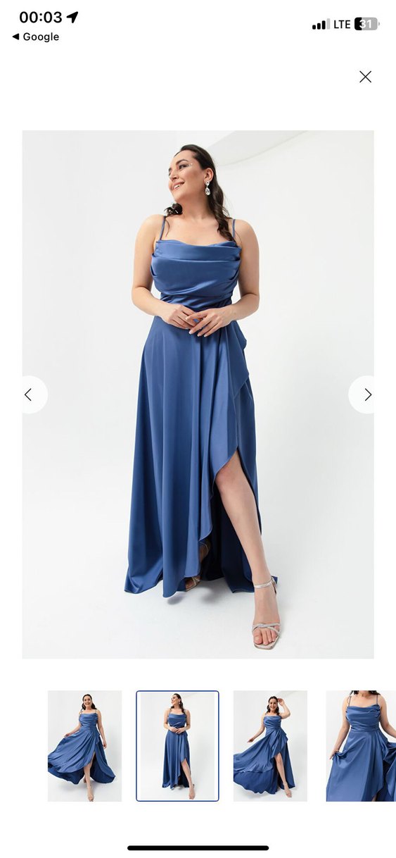 Lacivert renkte, askılı ve drapeli detaylara sahip uzun abiye elbise. Straplez yakalı, düzenli kesim ile düğünler için uygundur. ✨