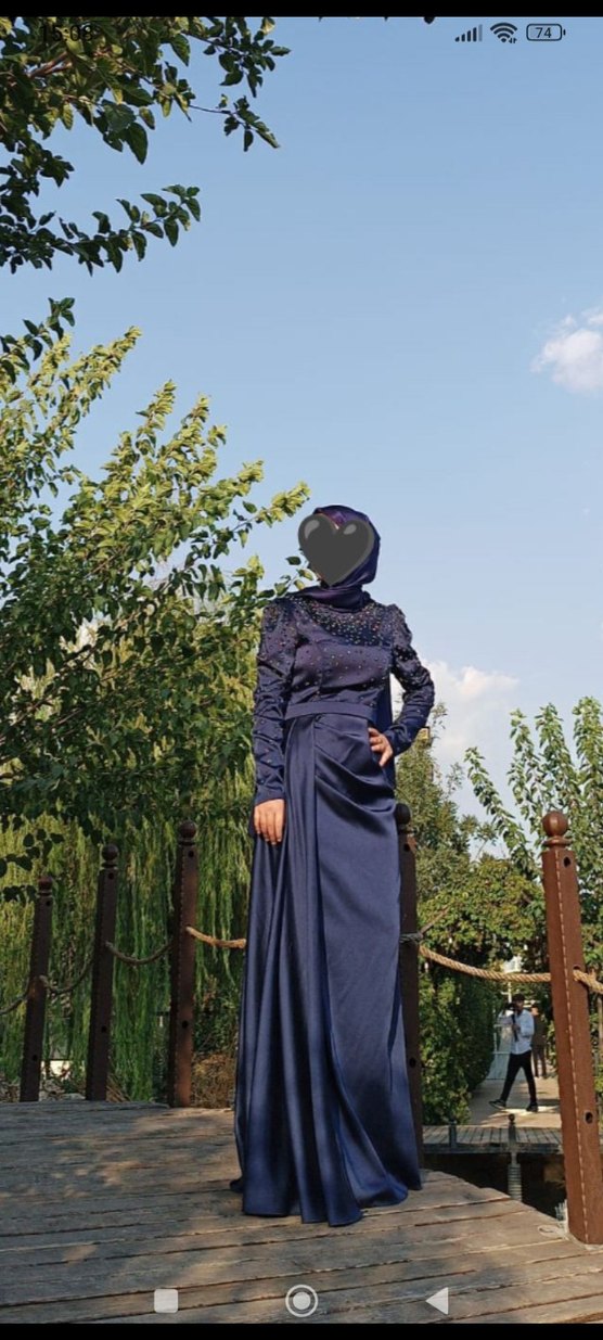 Lacivert renkte, ve uzun kollu bu uzun abiye elbise drapeli tasarıma sahiptir. Düğünler ve gotik tarz sevenler için uygun, sade ve rahat kesimlidir. bir kere kullanıldı hiçbir sıkıntısı yoktur.