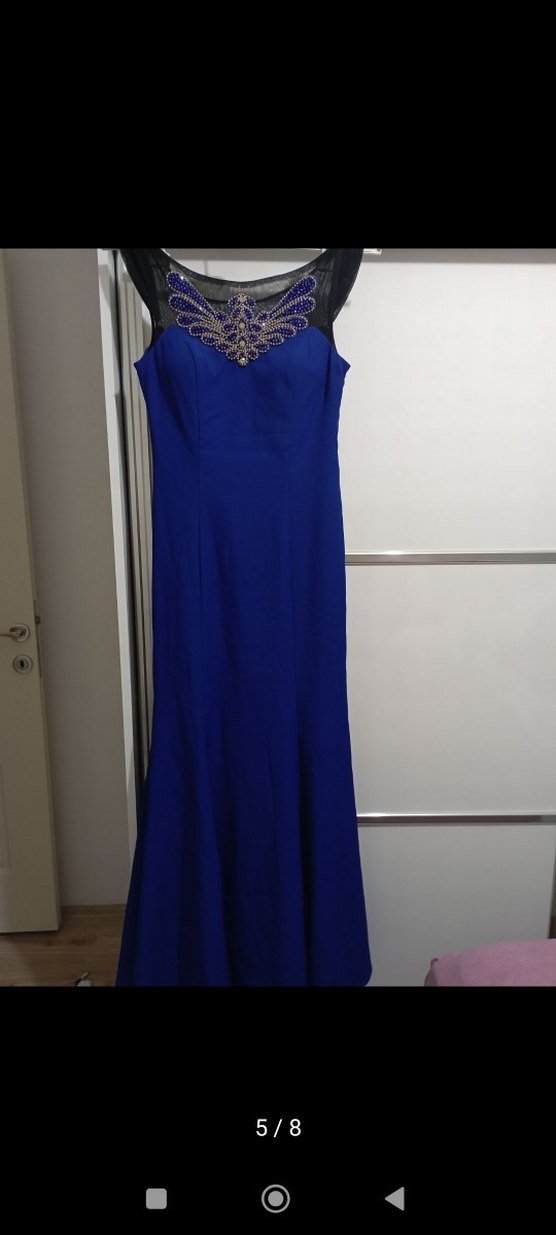 Lacivert Drapeli Uzun Abiye Elbise
