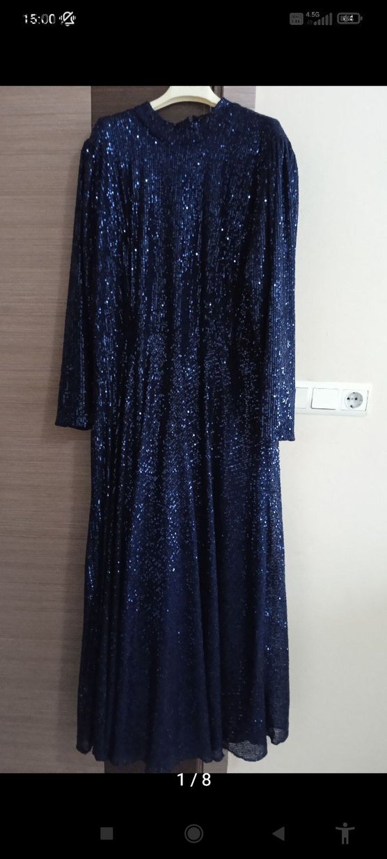 Lacivert uzun kollu, drapeli payetli abiye elbise yeni sıfır üründür, göğüs 65 bel 63 boy 145 cm likralı özel dikim çok şık abiye✨
