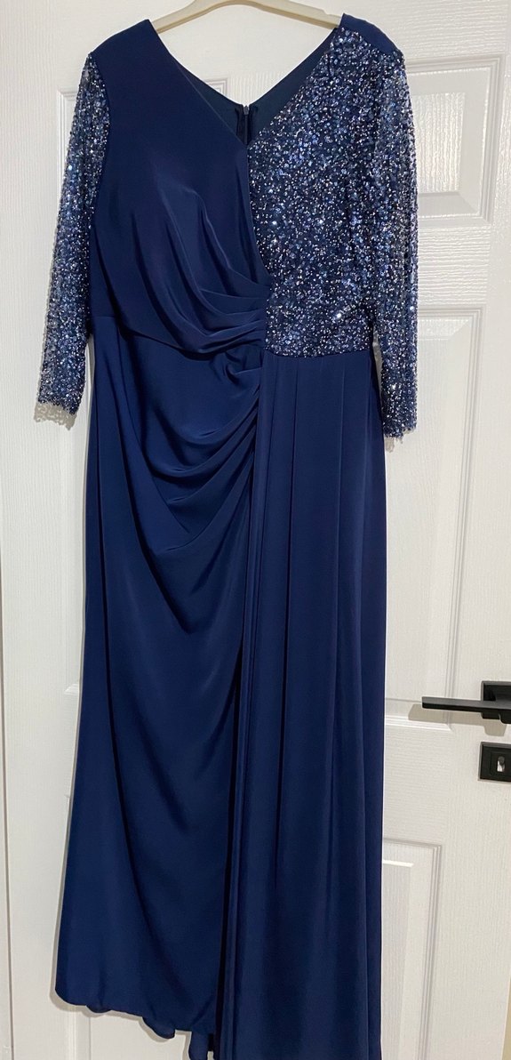 Acil SATİLİK temiz bir kere giyildi Lacivert renk, drapeli detaylı ve uzun kollu payetli abiye elbise. V yaka ve şık kesimiyle düğünler için uygundur. ✨ 50 beden 85 kilo kadar giyebilir