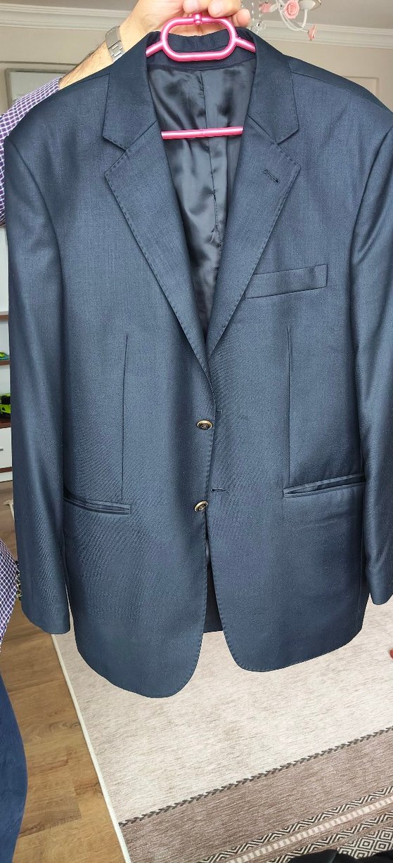Lacivert, düğmeli, uzun kollu ve klasik kesim erkek ceket, modern klasik tarzda ve ofis kullanımı için uygundur. ️