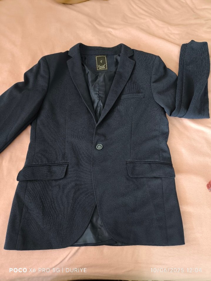 Lacivert erkek ceketi, düğmeli ve klasik yaka detayına sahip. Normal boy ve uzun kolludur, ofis ve günlük kullanıma uygundur. defosu yok görselde gözüküyor sadece kol düğmesini kırık slim fit bedeni de 54/6