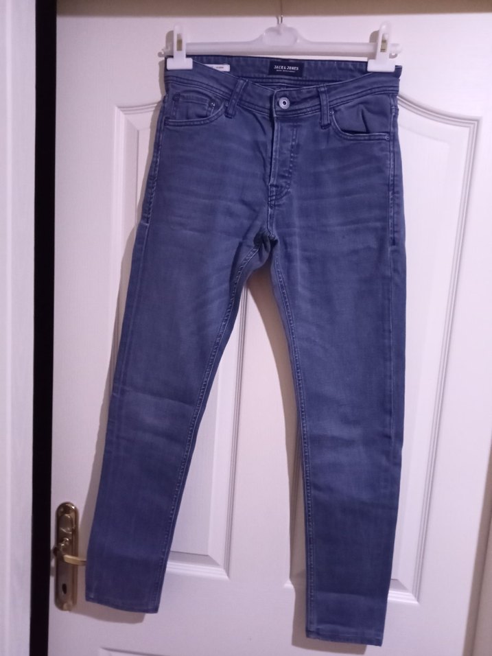 lacivert düğmeli, normal boy ve regular fit erkek denim pantolon, günlük rahat kullanım için uygundur.