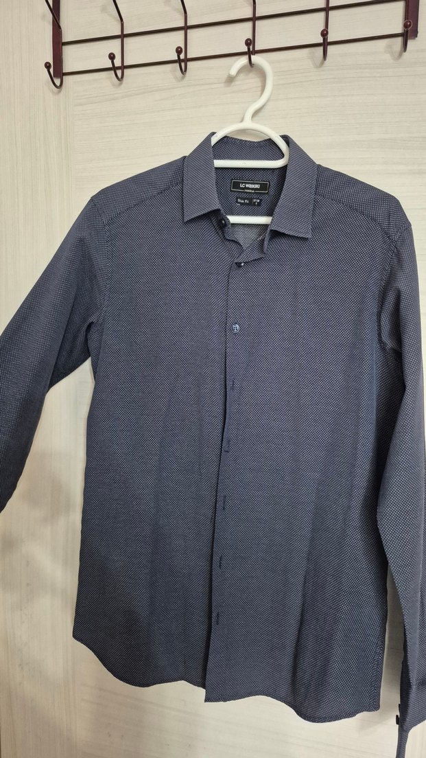 Düğmeli, yakalı ve uzun kollu bu erkek gömlek, slim fit kesime sahiptir. Lacivert desenli, sentetik kumaştan üretilmiş, ofis ve sokak stiline uygundur.