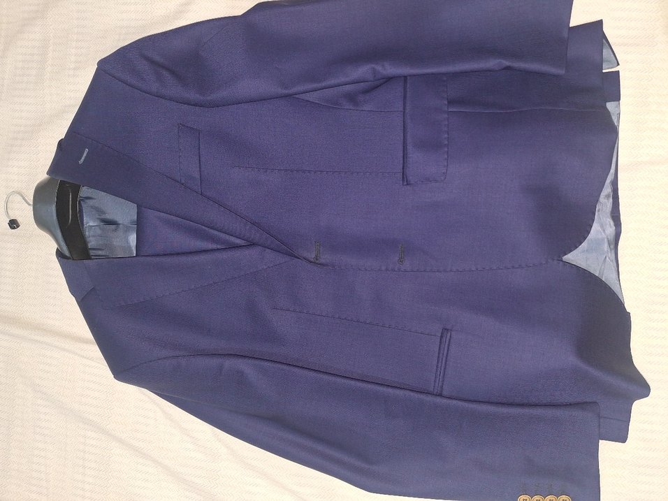 Mavi parlak renkte, düğmeli, normal boy ve regular fit erkek ofis takımı. Kollu tasarımı modern bir dokunuş katıyor.