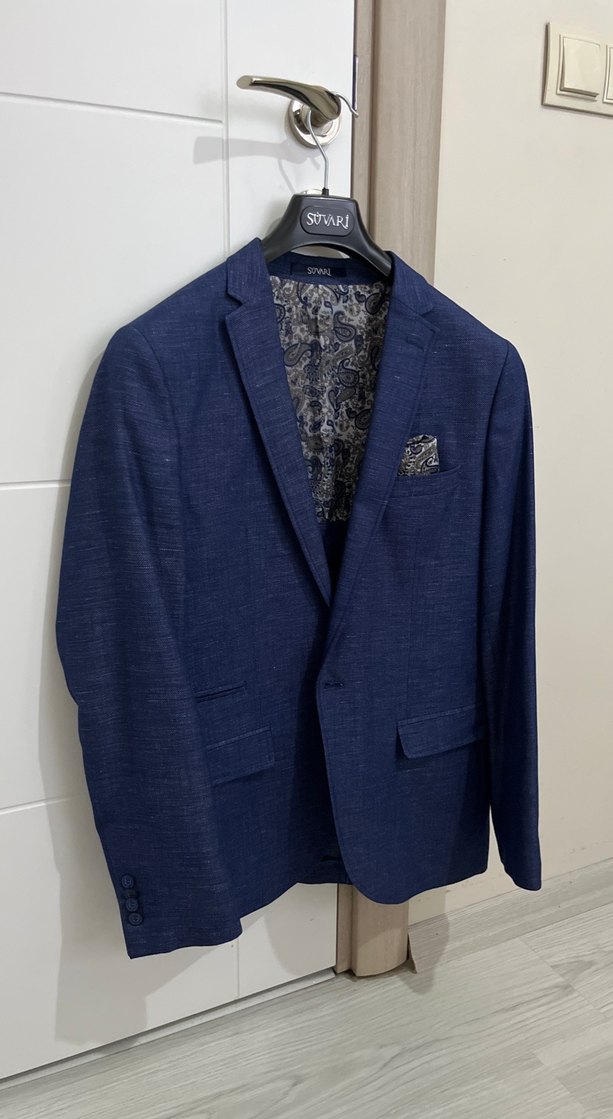 Lacivert renkte, düğmeli ve normal kesim erkek ofis takımıdır. Uzun kollu, desen içermeyen ve notched yaka modelidir. İş ortamı ve günlük tarz için uygundur.