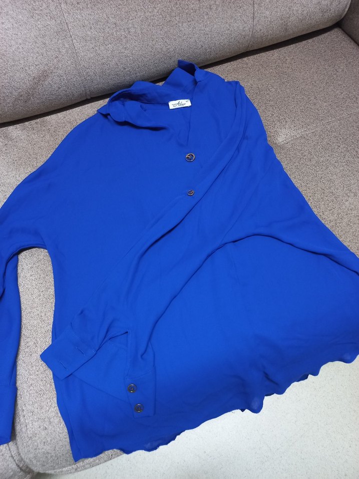Lacivert renkli, düğmeli, bol kesim hamile bluzudur. Uzun kollu, yakalı ve keten kumaştandır. Normal midi boyda, günlük kullanıma uygundur.