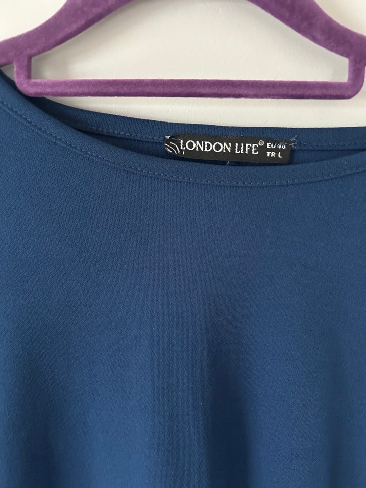 Lacivert renkli, düğmeli, yuvarlak yaka ve uzun kollu hamile tişörtü. Pamuklu kumaştan, normal midi boyunda ve rahat kesimlidir. Günlük kullanıma uygundur.
