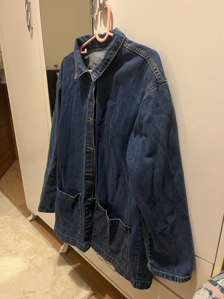 Lacivert renkli, düğmeli, salaş kesim kadın denim ceket. Notlu yaka, uzun kollu ve normal midi boydadır. Günlük rahat kullanım için uygundur. Çok az giyildi kendime yakıştırmadığım için satıyorum teklif verebilirsiniz.