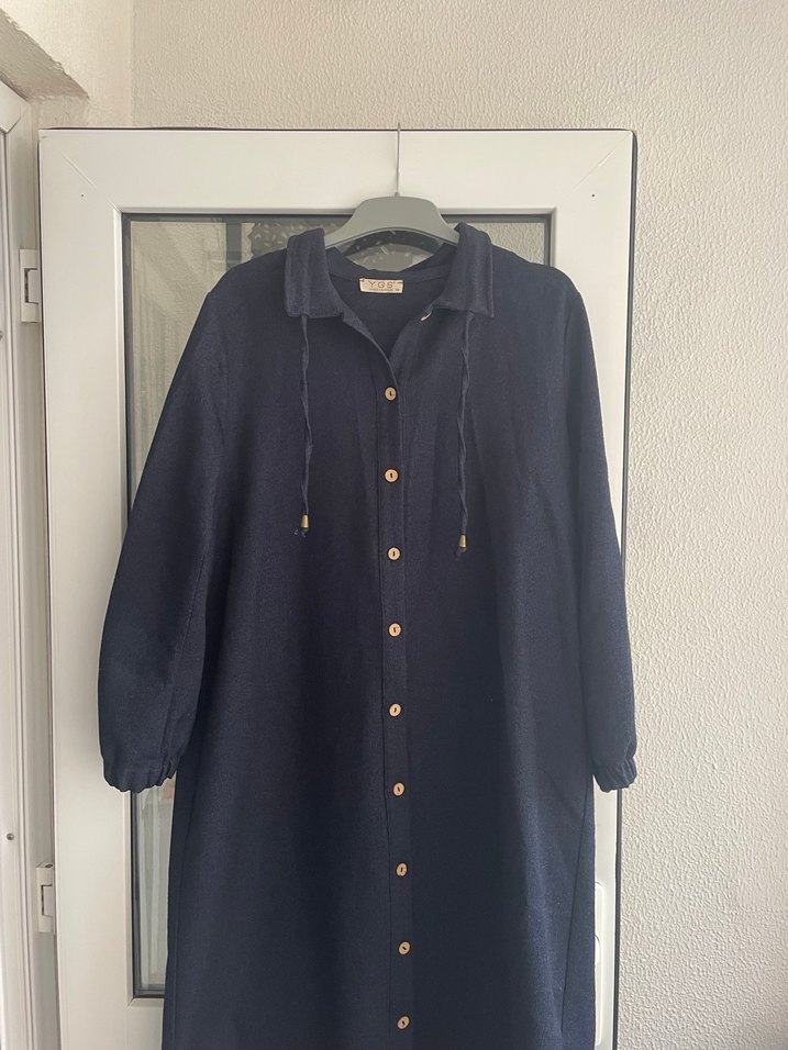 Lacivert düğmeli, uzun kollu ve yakalıdır. Rahat kesimi ve normcore tarzıyla günlük kullanıma uygundur. Kap