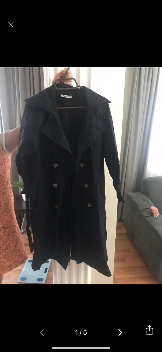 Laci keten kumaştan, düğmeli ve kesimli yapıya sahip midi uzunlukta trençkot, gündelik kullanıma uygun şık ve gotik Paris tarzında.